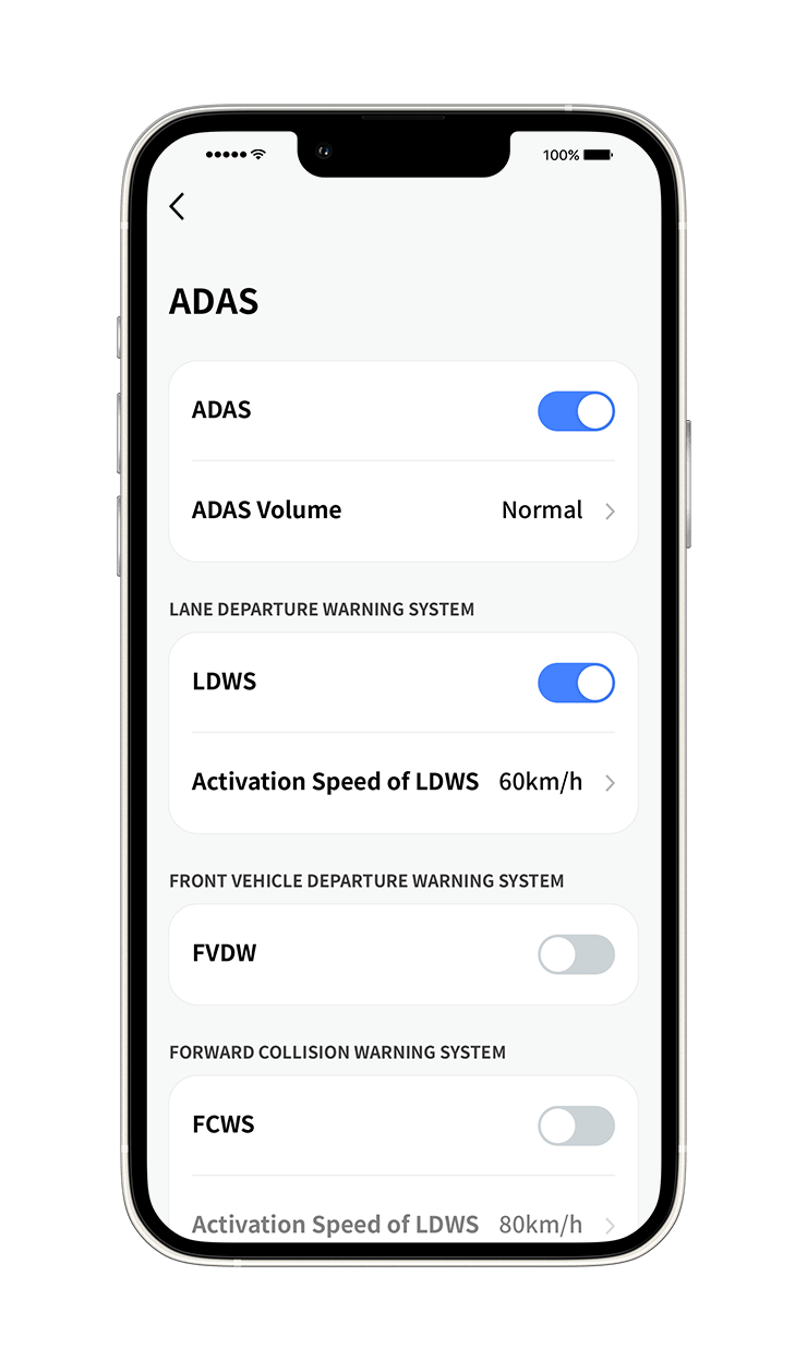 LDWS(Lane Departure Warning System) FVDW(Front Vehicle Departure Warning) FCWS(Forward Collision Warning System)